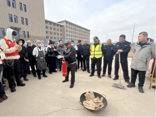 演练之前,消防科白晓龙进行消防安全知识讲解,普及初期火灾的扑救技巧,以通俗易懂的语言剖析火灾隐患的排查方法,使参与人员深刻认识到消防安全的重要意义。随后,围绕干粉灭火器、灭火毯等常用器材,详细演示“提、拔、握、压”的操作要点,并讲解器材的适用场景及安全注意事项。
