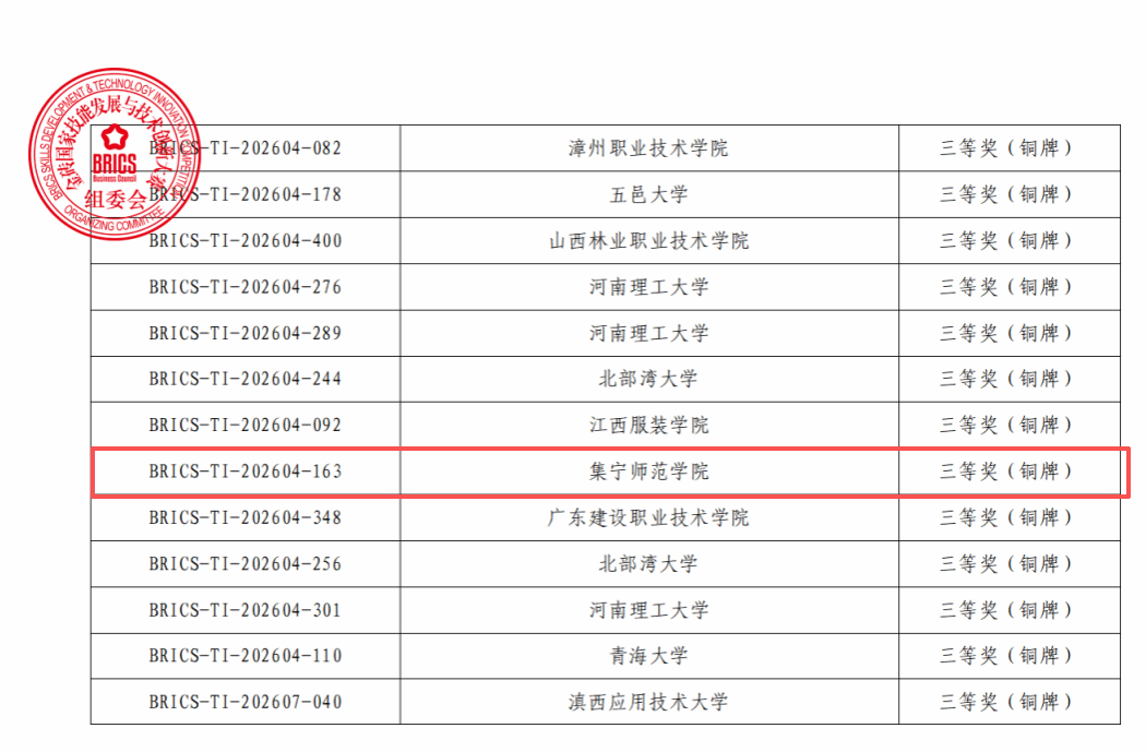 此次获奖,不仅是对参赛学子专业能力与创新素养的充分肯定,也为学院赢得了荣誉。未来,计算机与大数据学院将继续以高水平学科竞赛为重要抓手,持续夯实实践育人阵地,不断提升人才培养质量,助力学子成长成才,为培养新时代高素质技术技能人才、服务区域数字经济发展贡献更大力量。