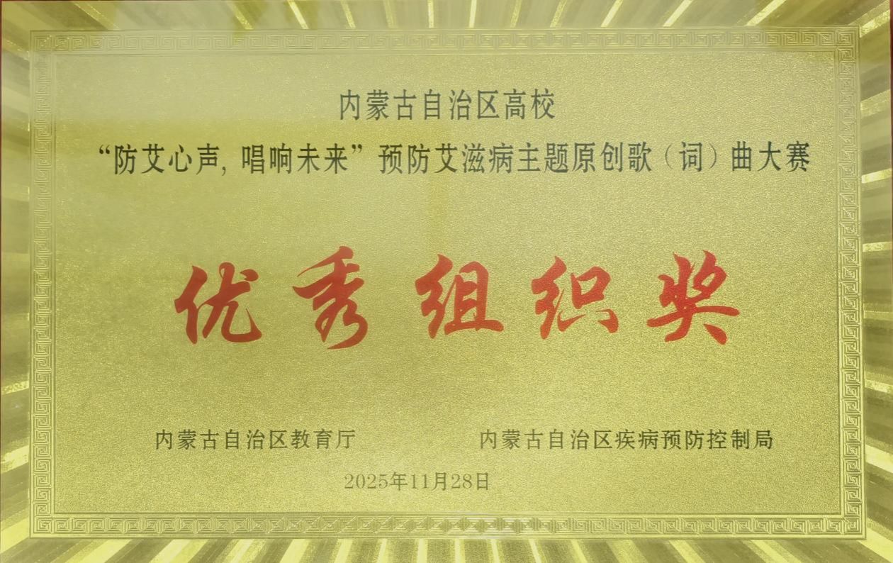 此次获奖,标志着我校在健康校园建设道路上迈出了坚实的一步。学校将进一步深化艾滋病防治宣传教育工作,着力推动科学防艾理念内化为师生的自觉意识、外化为日常的行动自觉。未来,我们将持续开展防艾主题文艺创作、知识竞赛、志愿服务等多元化活动,鼓励更多学子以青春之声传播防艾知识、以青春之行担当防艾使命,在筑牢校园健康安全防线的同时,为创建无艾校园、助力健康内蒙古建设贡献属于我校的青春力量。