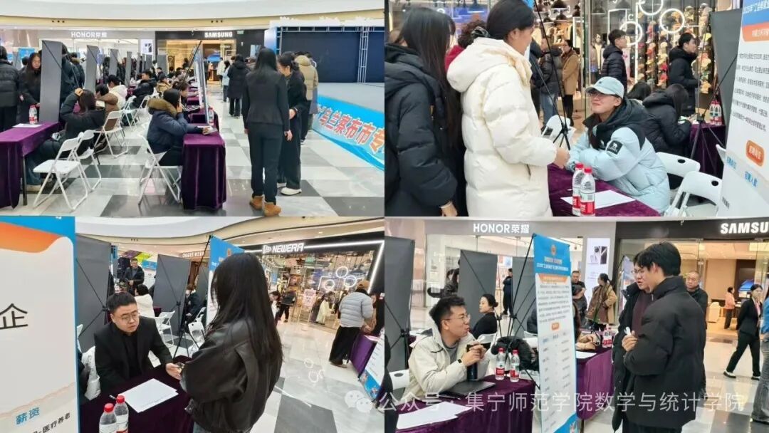 12月13日,集宁师范学院数学与统计学院协同乌兰察布市总工会、市人力资源和社会保障局、共青团乌兰察布市委员会、市妇女联合会和市工商业联合会在万达广场开展“工会送岗位,就业暖人心”—2025年“工会帮就业”专场招聘活动。我院院长何永峰,学团办公室主任高霞及相关科室负责人出席招聘会现场,与用人单位和毕业生面对面交流,共同搭建优质就业平台。