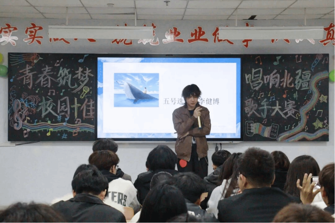 李健博同学阳光自信,活力满满,用富有朝气的歌声点燃现场气氛。用热情与真诚打动观众,展现出新时代青年昂扬向上的精神风貌。