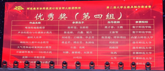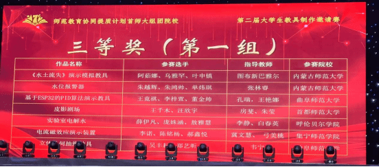 9月30日,由集宁师范学院主办,首都师范大学牵头、指导和支持,内蒙古师范大学、杭州师范大学、曲阜师范大学、呼伦贝尔学院、拉萨师范高等专科学校共同参与。师范教育协同提质计划首师大组团院校第二届大学生教具制作邀请赛复赛在集宁师范学院泉山校区圆满落幕。