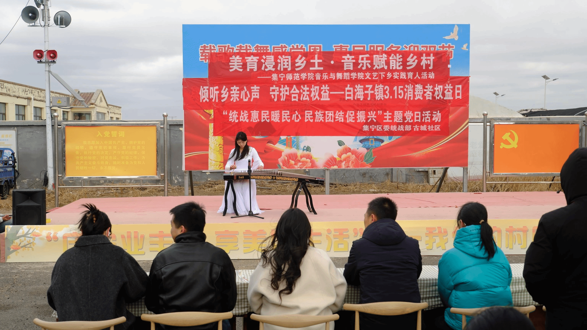 为深入推进美育教育落地基层,助力乡村文化振兴,丰富乡村群众精神文化生活,2026年3月13日,由集宁区委统战部、集宁区委工商联、集宁区民委、集宁区白海子镇人民政府、集宁师范学院音乐与舞蹈学院在白海子镇泉玉岭村共同举办“美育浸润乡土 音乐赋能乡村”文艺下乡实践活动。