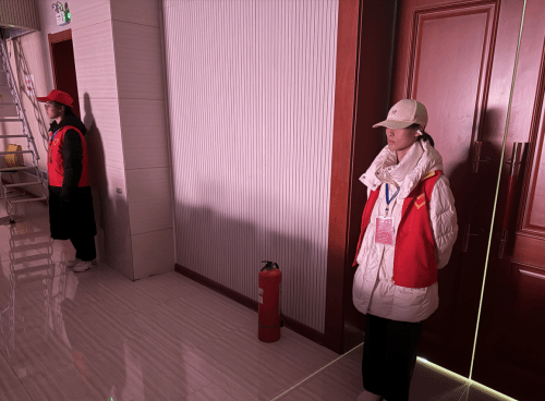 活动期间,志愿者按照工作要求:统一着装、佩戴工作牌签到就位,并将灭火器运送至指定位置,做好消防应急准备;值守现场关键点位,密切关注动态、引导观众遵守秩序,及时劝阻制止违规行为,同时加强周边巡逻,排查消除安全隐患、严防无关人员进入,全力保障活动安全有序开展。