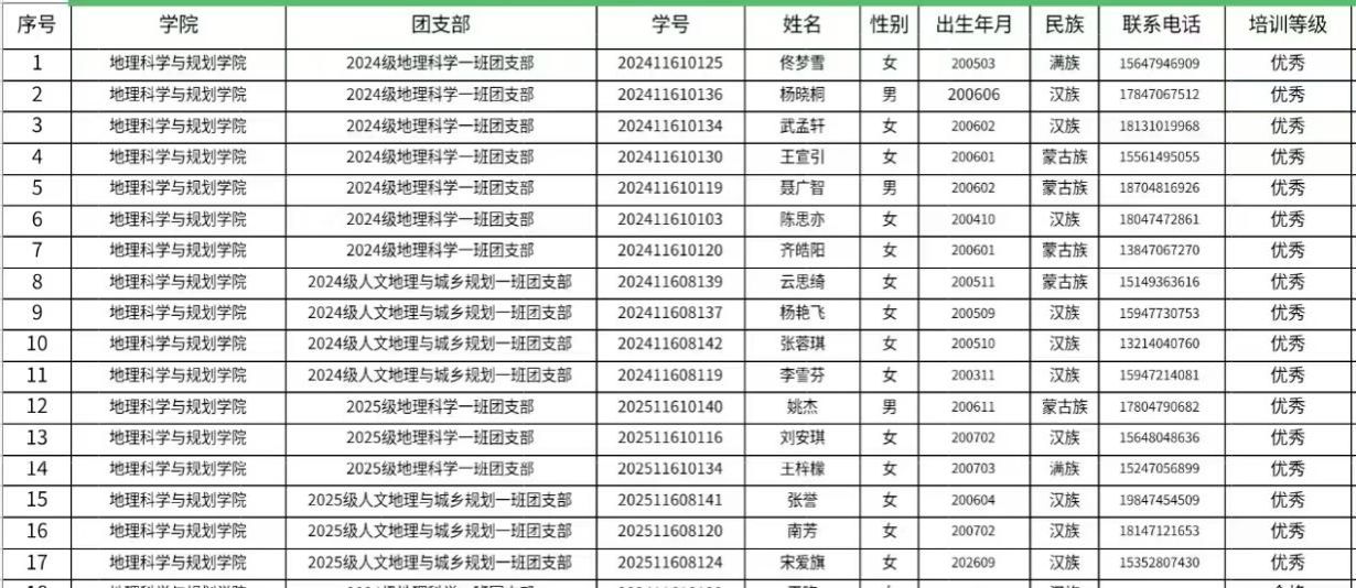为深入学习贯彻党的二十大和二十届历次全会精神,切实加强团员思想政治引领与先进性建设,根据《中国共产主义青年团章程》《中国共产主义青年团团员教育管理工作条例(试行)》《集宁师范学院团员教育培训工作实施办法》,结合工作实际,3月16日至19日,地理科学与规划学院开展第三十三期团员培训。