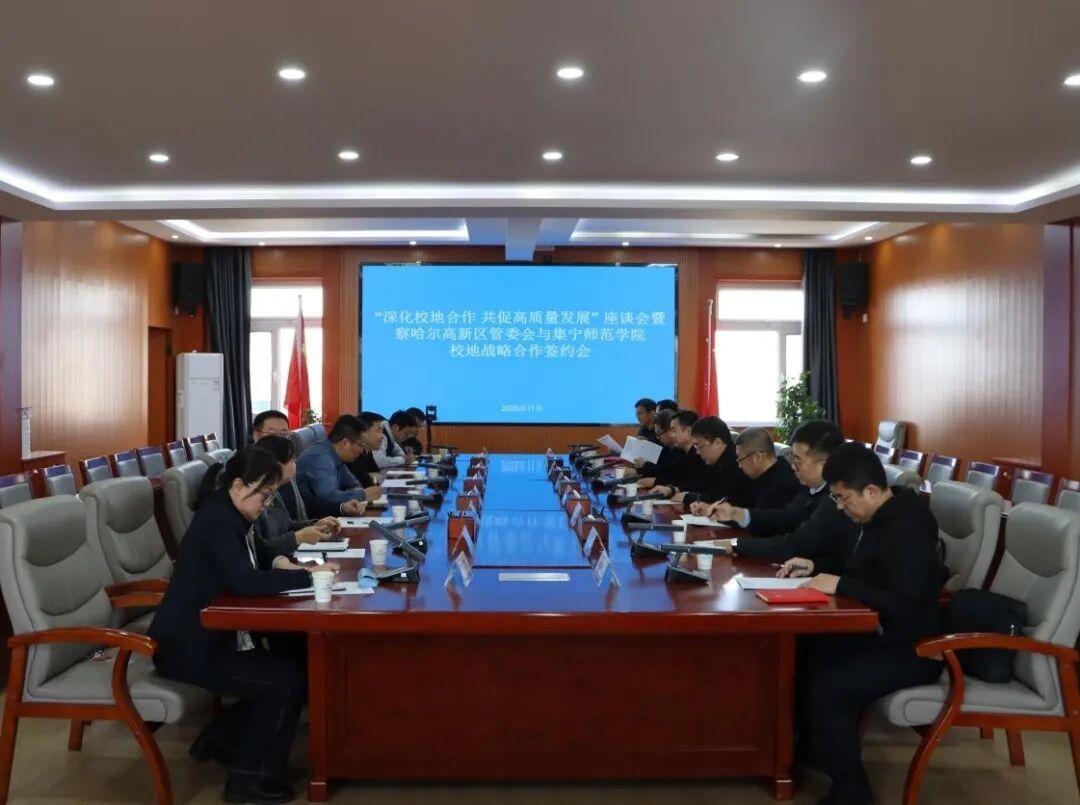 会上,我校与察哈尔高新技术开发区管理委员会签署了战略合作框架协议。此次战略合作立足乌兰察布市经济社会发展实际与集宁师范学院学科专业布局需求,以“优势互补、资源共享、互利共赢”为原则,旨在建立紧密型校地合作机制,推动教育链、人才链与产业链、创新链深度衔接。未来,双方将以务实举措深化人才共育、平台共建、成果共促,形成政校企协同创新合力,在项目共建、资源共享、人才互通、成果共赢上实现实质性突破,为乌兰察布市产业转型升级和区域经济高质量发展提供持续的人才支撑与智力支持。