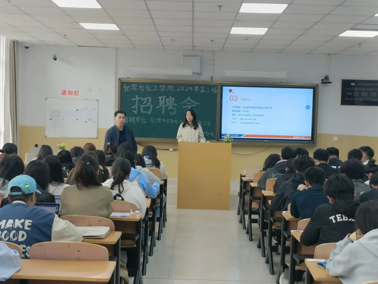 为拓宽我院毕业生就业渠道,把握优质就业岗位,推动和提升学生就业质量,化学与化工学院于2024年5月10日下午3:00—4:00在逸夫楼102召开2024年第三场招聘会。乌兰察布东阳光化成箔有限公司前来我院为大四毕业生及大三学生“强”技能,“送”岗位。