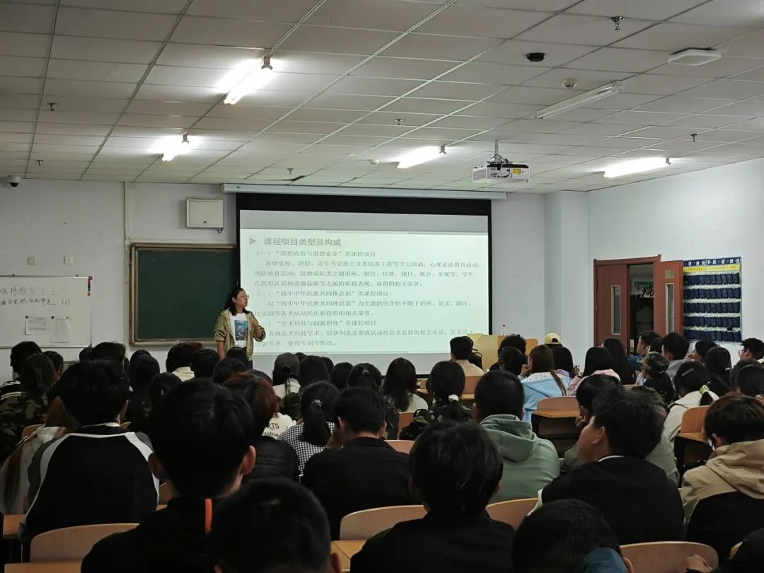 本期主讲人为化学与化工学院学团办副主任、团总支书记李欢老师。李老师以“新生入学教育——第二课堂实施办法”为题,重点从“第二课堂成绩单制度实施细则”“第二课堂课程项目积分细则”“到梦空间 活动负责人使用手册”“到梦空间系统App使用指南”“公共安全”“防虚假信息”六个方面开展了此次讲座。