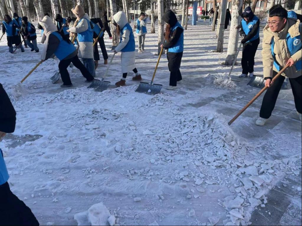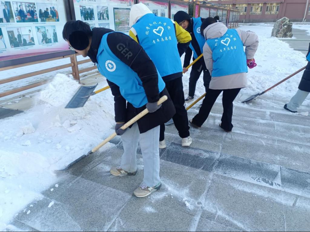 为应对极端冰雪天气,保证校园道路通畅,确保师生出行安全,化学与化工学院学生党支部于12月21日下午开展“扫雪除冰、安全出行”主题党日活动,学院学生党支部书记周丹老师、在校党员、预备党员及第48期入党积极分子参与本次活动。