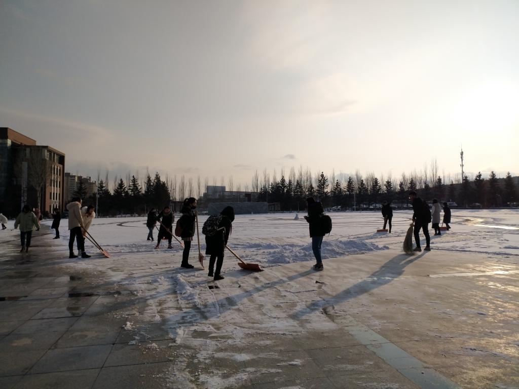 2019年12月17日下午3点,化学与化工学院学工党支部组织党员、学生入党积极分子、预备党员以及环境区值日的班级,参与了清扫积雪活动。