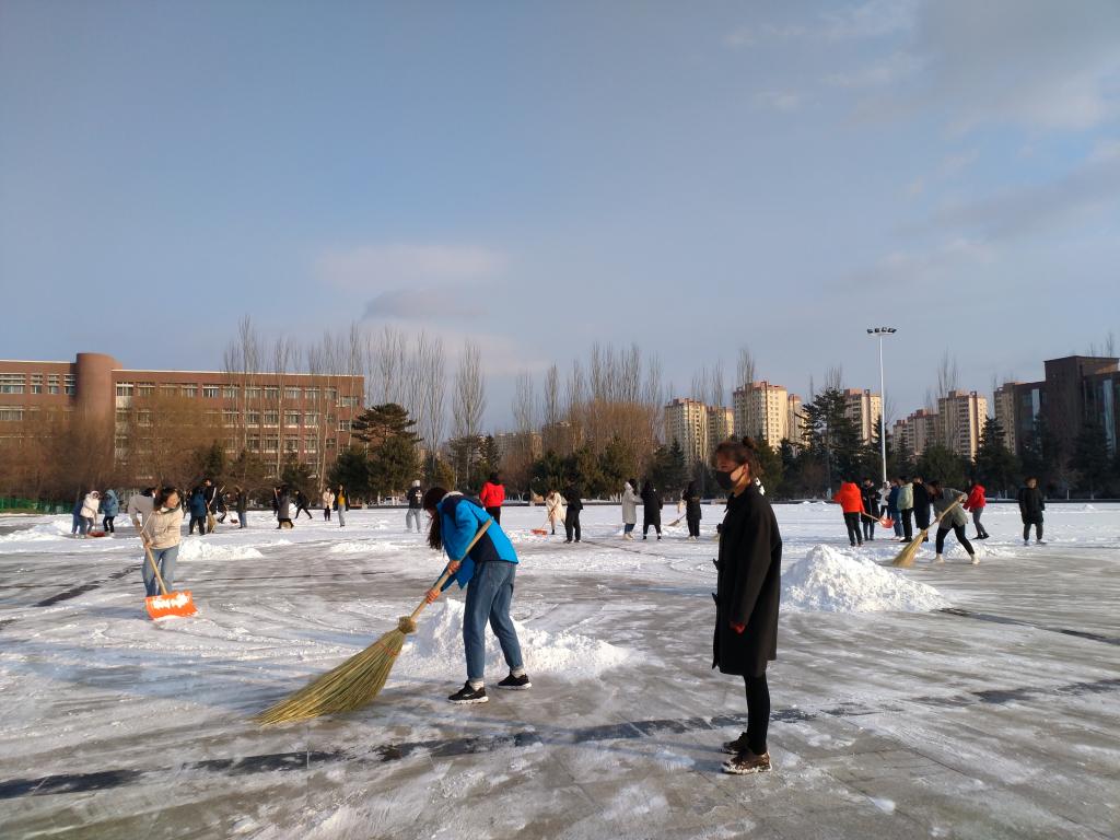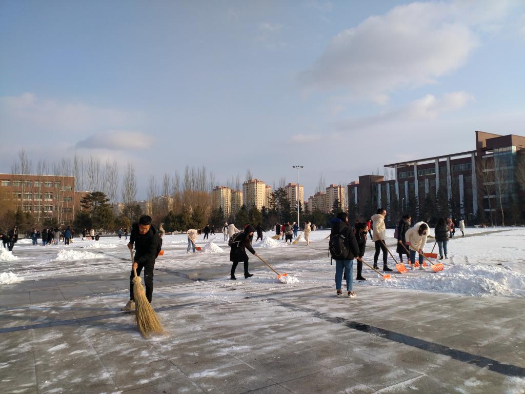学工党支部组织师生清扫积雪