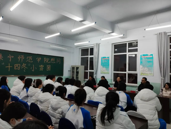 2月25日,校党委副书记梁政在校团委书记王晓瑭的陪同下,深入“十四冬”凉城赛区,对我校的“小雪团儿”进行了看望和慰问。我校共有35名志愿者分别服务于反兴奋剂组、接待组、礼仪组、竞赛场地组、宣传组等岗位。