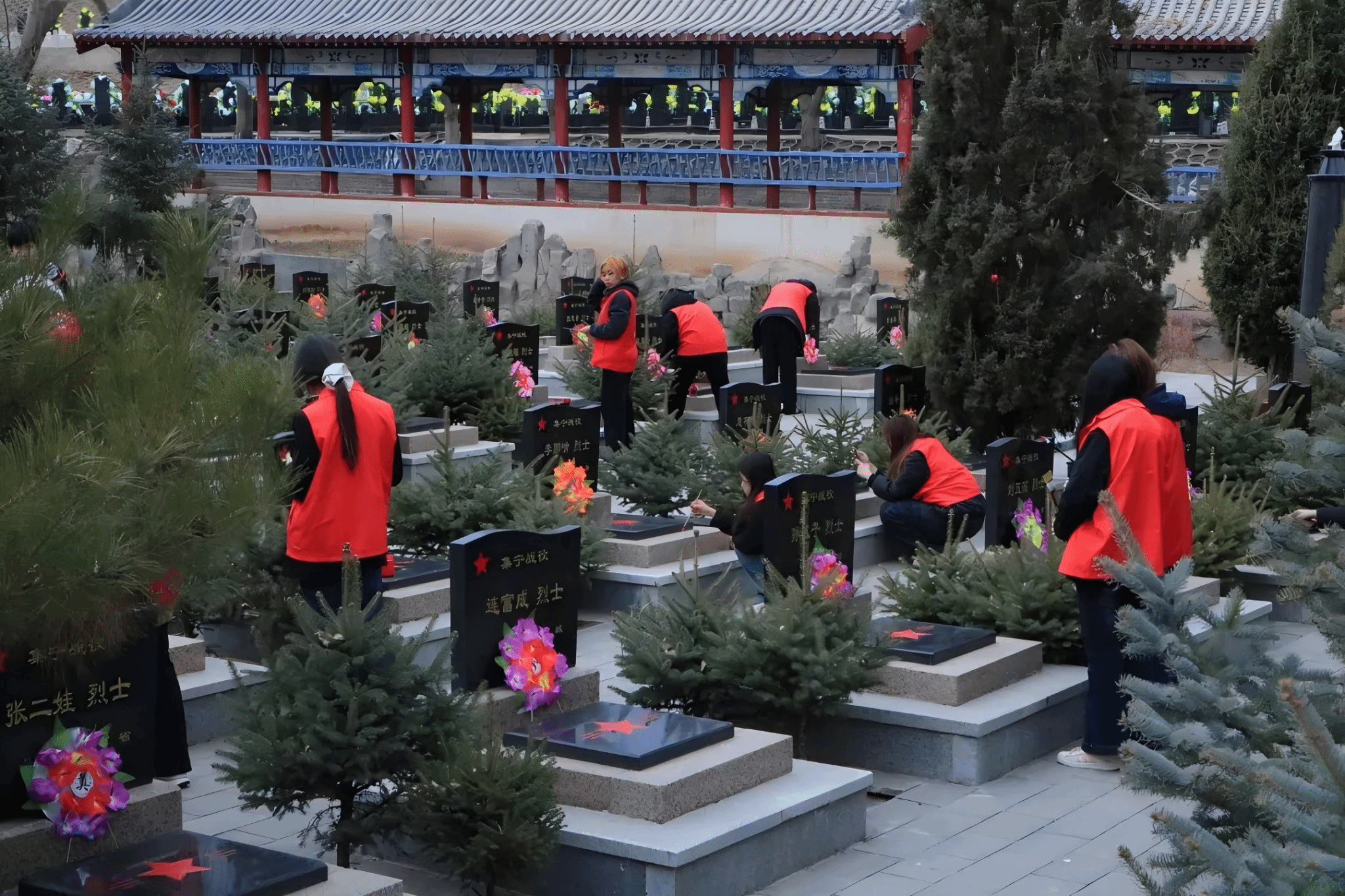 墓区祭扫献敬意
