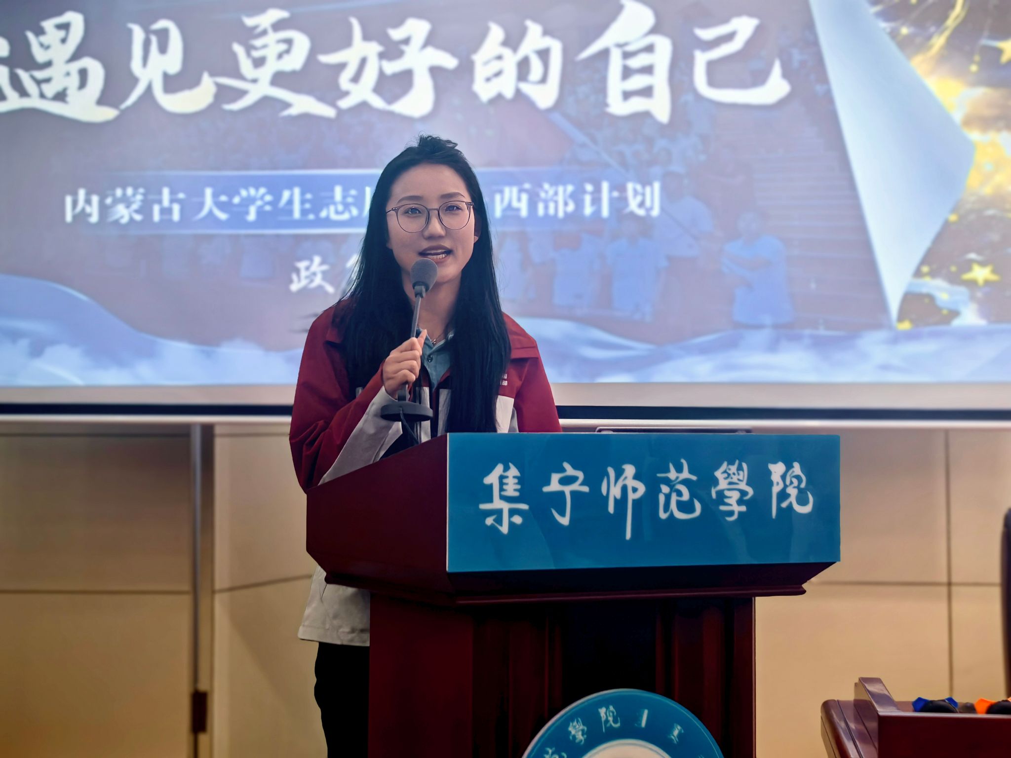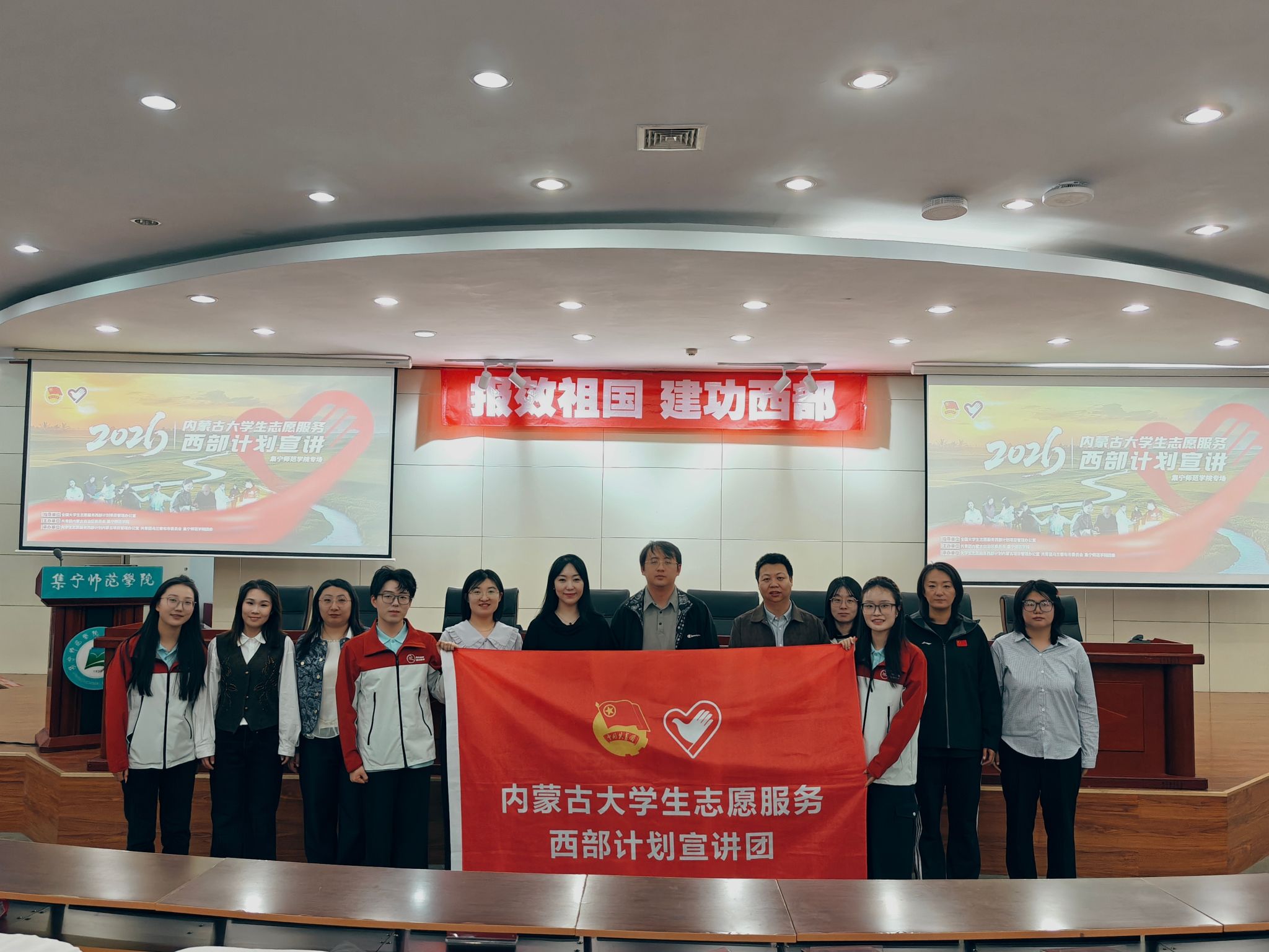 4月15日,我校举办2026年内蒙古大学生志愿服务西部计划集宁师范学院专场宣讲会。宣讲会以泉山校区为主会场,同步开设线上分会场,白海校区师生及校外实习学生线上参会。活动邀请西部计划项目办宣讲团成员,围绕西部计划政策解读、服务经历分享等内容开展宣讲。校团委副书记范娟,团市委青年志愿服务中心负责人陈飞,各二级学院团总支书记、辅导员,校团委全体成员及学生代表参加本次宣讲会。