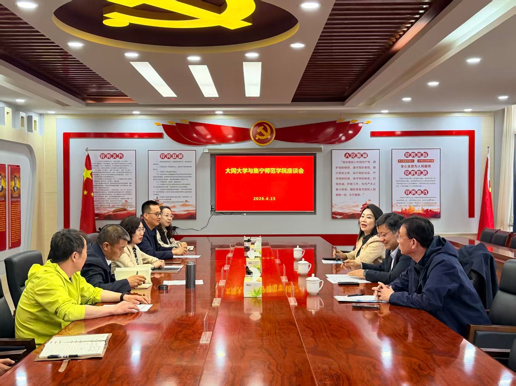 4月15日下午,山西大同大学党委副书记张卫国、党委学生工作部部长杨容、校工会主席侯桂兰一行来校调研交流。党委副书记李景杰,党委委员、副校长张秀文出席会议,校工会、学生工作部相关负责人参加座谈。