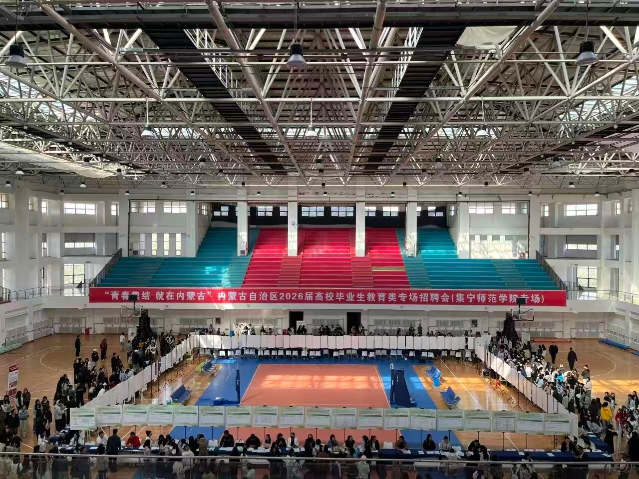 为深入贯彻党中央、国务院关于高校毕业生就业创业工作决策部署,落实全国高校毕业生等青年就业创业工作视频会议精神,推动落实自治区“1571”工作部署落地见效,进一步搭建用人单位与高校毕业生精准对接平台,全力促进2026届高校毕业生高质量充分就业,4月18日,由内蒙古自治区教育厅主办,集宁师范学院、乌兰察布市人力资源和社会保障局、乌兰察布市人力资源和就业服务中心承办的“青春集结 就在内蒙古”—内蒙古自治区2026届高校毕业生教育类专场招聘会(集宁师范学院专场)在集宁师范学院白海校区举办。