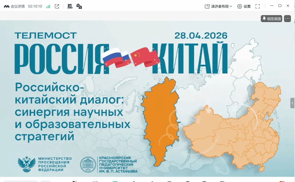 4月28日,作为中俄教育合作年重要活动,由俄罗斯克拉斯诺亚尔斯克阿斯塔菲耶夫国立师范大学主办的“中俄对话:科技与教育战略的协同”线上会议成功举办,本次会议汇聚中俄两国11所高校云端相聚。在学校国际交流学院精心组织、统筹协调与全程保障下,我校教育科学学院院长赵晓英率团队应邀参会,并作题为《深化中俄教育合作 共促儿童发展与教师成长》的主旨报告,与中俄高校专家学者共商教育合作、共谋发展大计。