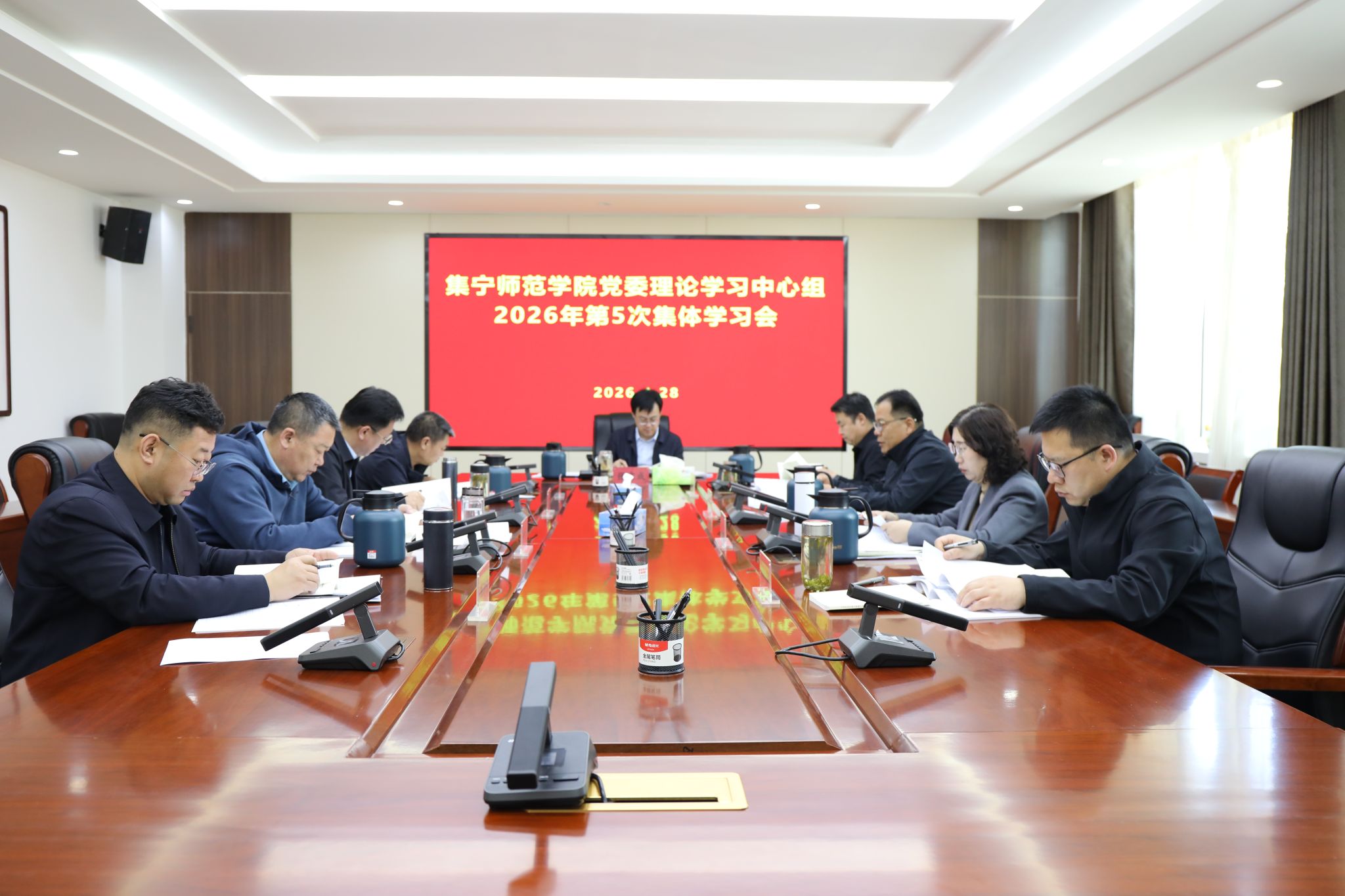 4月28日,集宁师范学院党委理论学习中心组召开2026年第5次集体学习会。党委书记张宝成主持会议并作总结讲话。党委理论学习中心组成员参加学习。