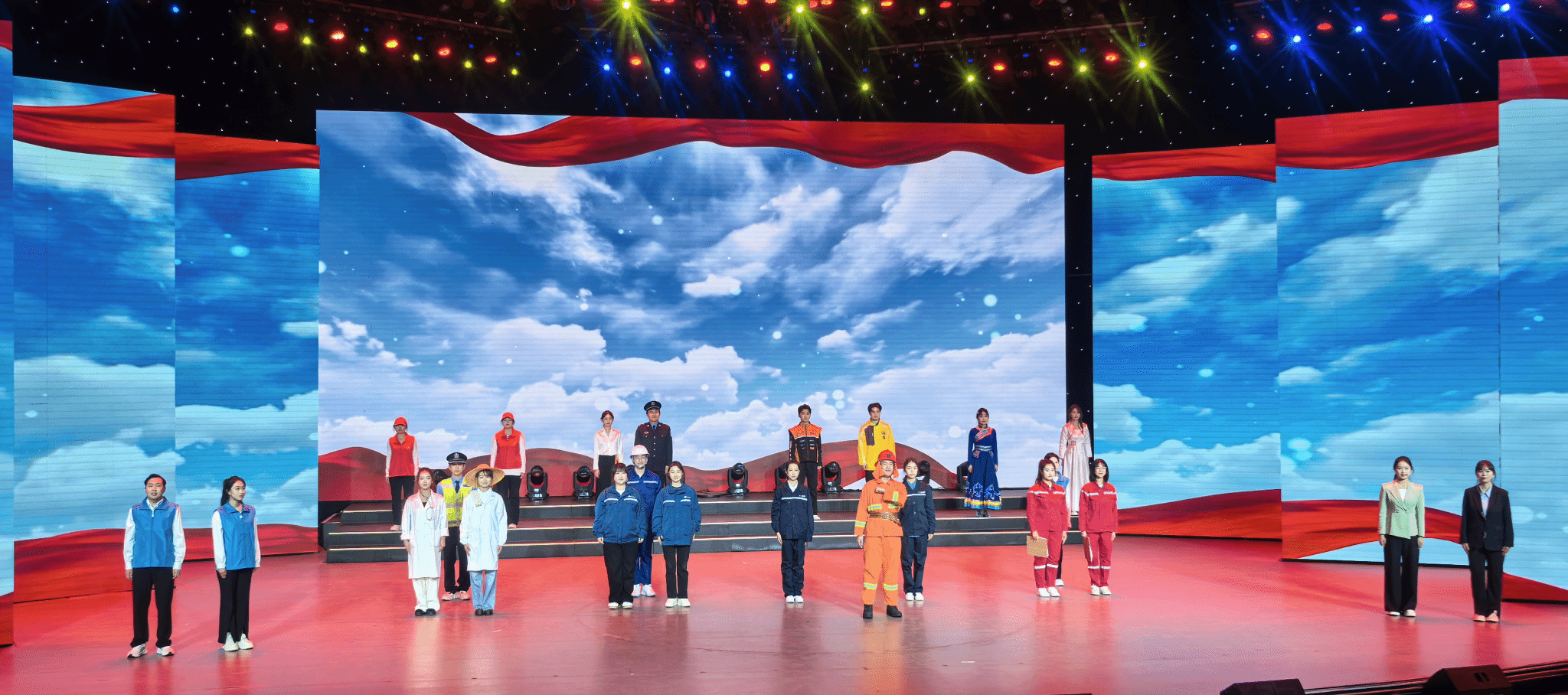 由我校现代服务学院师生演绎的情景朗诵《石榴花开 同心筑梦》,以真挚的情感、铿锵的语言,生动诠释了各民族青年像石榴籽一样紧紧抱在一起,同心共筑中国梦的坚定信念,赢得现场观众阵阵掌声。