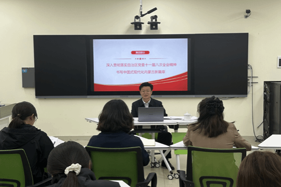 9月20日下午,校党委书记朱玉东深入蒙古学学院为师生宣讲党的二十届三中全会精神。蒙古学学院党总支书记额尔敦其其格、副院长常红梅及部分教师代表,2023级中国少数民族语言文学二班全体学生参加。