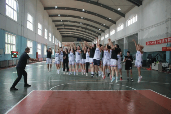 2023年9月,阳光女篮的负责人、教练成立章老师启动了“重建计划”,他依托“集师篮协”公众号全网推送招募信息,并联动各学院体育部广发“英雄帖”,还亲自恳请大学体育课教师逐班推荐合适人选,随后挨个电话沟通、逐一确认意愿。短短两周,一支“零体育特招、零篮球基础、零完整训练时间”的重建队伍迅速集结,“只要肯跑,我们就要”成为阳光女篮最响亮的集结号。第一次集结训练的画面,至今想来仍让人记忆犹新:篮球在队员们手中仿佛成了不听话的“调皮蛋”,简单的双手传球频频失误,要么力道过大砸在队友身上,要么角度偏差飞出场外;跑位训练更是一片混乱,该挡拆的没及时卡位,该切入的却原地迟疑,场上的呼喊声、篮球落地的咚咚声与偶尔的叹息声交织在一起,构成了这支球队最初的底色。就连最基础的篮下砸板练习,姑娘们都要反复调整站姿、手腕力度和瞄准角度,往往几十次尝试才能换来一次精准命中。有队员曾私下问成老师:“教练,我们这样的队伍,真的能打比赛吗?”成老师看着这群眼里藏着热爱却又带着迷茫的姑娘,坚定地告诉她们:“篮球的起点是热爱,但终点是坚持,只要肯拼,我们就能走出自己的路。”
