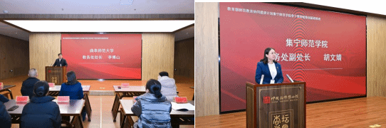 1月11日下午,研修班开班仪式在中国教师博物馆教育家讲习馆举行。曲阜师范大学教务处处长李傅山致欢迎辞,他表示,教育部师范教育协同提质计划实施以来,两校在教师培养、教学改革等领域搭建了坚实的合作桥梁,积累了丰硕的交流成果,期待以此次培训为契机,进一步凝聚两校育人共识,助力双方教师队伍建设与教育教学质量共同提升。胡文婧代表我校向曲阜师范大学为本次培训所做的精心筹备表示诚挚谢意,同时勉励全体参训学员以饱满的热情、务实的作风投入学习,主动汲取先进理念与实践经验,力求在数字教学与课堂创新领域实现自我提升与突破。