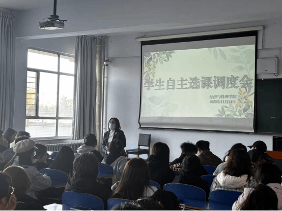 为深入践行“以学生为中心”的教育理念,助力学生精准规划学业发展路径,切实解决学生在自主选课过程中的困惑与难题,集宁师范学院经济与管理学院于2025年11月14日15时,在主教楼Z117教室隆重召开学生自主选课调度会。院长张伟、副院长么秀杰亲临现场并发表专题指导讲话,各专业、各年级的近百名学生代表齐聚一堂,共话选课事宜,现场交流氛围热烈而浓厚。此次调度会作为学院深化教育教学改革的关键一环,以师生面对面沟通的形式,搭建起高效的交流桥梁,助力学生深刻领会选课政策核心要义,科学擘画个人学业成长蓝图。