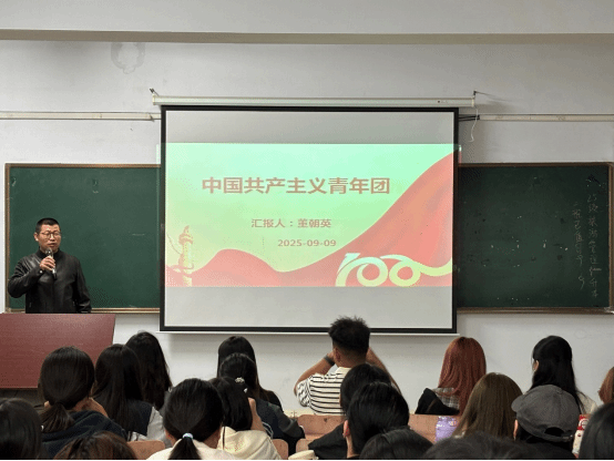 9月9日团总支书记董朝英为2025级全体同学讲解共青团建设和第二课堂制度