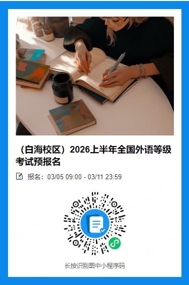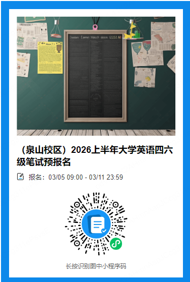 2026年上半年全国大学外语四、六级笔试(CET)将于6月13日举行。现将我校大学外语四、六级考试预报名相关事宜通知如下: