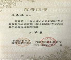 2.教学与教研管理:积极推动教育教学改革,更新教学观念,探索高效教学模式,完善教学大纲与教学内容;组织青年教师参加各类课堂教学技能大赛,每年至少开展1次技能竞赛,提升青年教师教学能力;近几年,研究所教师在自治区级以上教学比赛获奖5项,其中高校数学微课程教学设计竞赛华北赛区二等奖4项、第十三届内蒙古自治区高校青年教师教学竞赛二等奖1项;获校青年教师教学技能大赛一等奖1项、二等奖2项、三等奖2项。