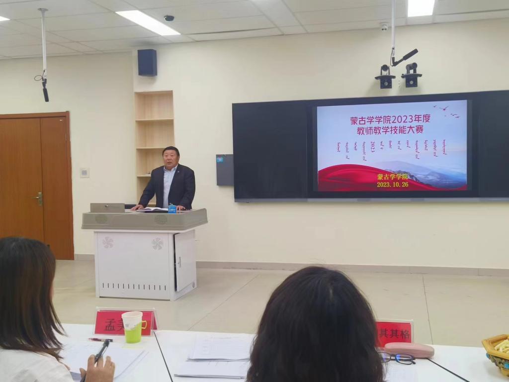 按照内蒙古自治区教育厅《关于举办第三届全区本科高校课程思政教学比赛的通知》(内教高函〔2023〕85 号)和学校《关于举办集宁师范学院第三届课程思政教学比赛的通知》要求,我院于2023年10月26日下午,成功举办蒙古学学院2023年度教师教学技能大赛。比赛在学院楼5311教室举行。额尔敦其其格、孟美英、朝格图、乌恩其、图雅担任评委。比赛内容包括教学大纲、教学设计、教学技能等几个方面。