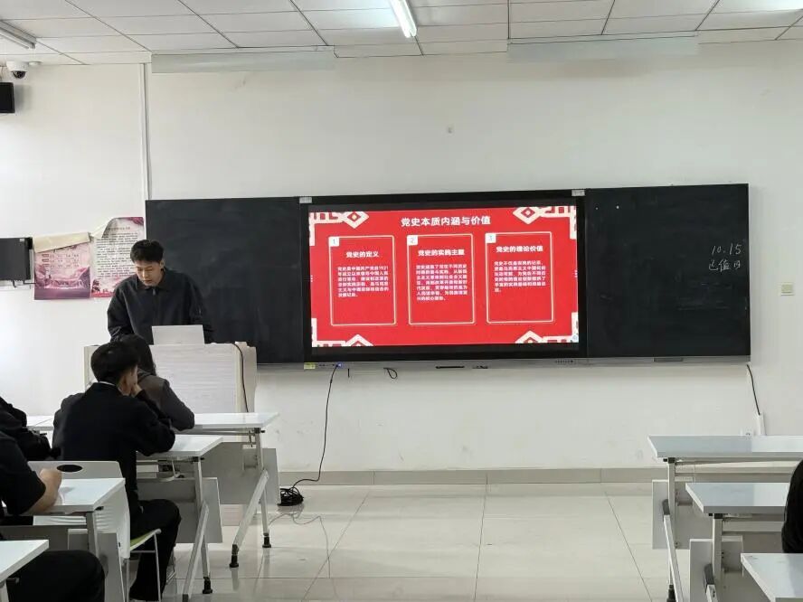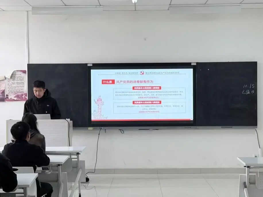 为深入贯彻党的创新理论,提升学生党员政治素养与思想觉悟,2025年10月16日,现代服务学院学生党支部以“筑牢信仰之基、补足精神之钙”为主题,开展专题党课学习。此次党课打破传统授课模式,由孙硕、宋文发、李帅三位学生党员轮流主讲,以学生党员视角让理论学习更具感染力与实效性。