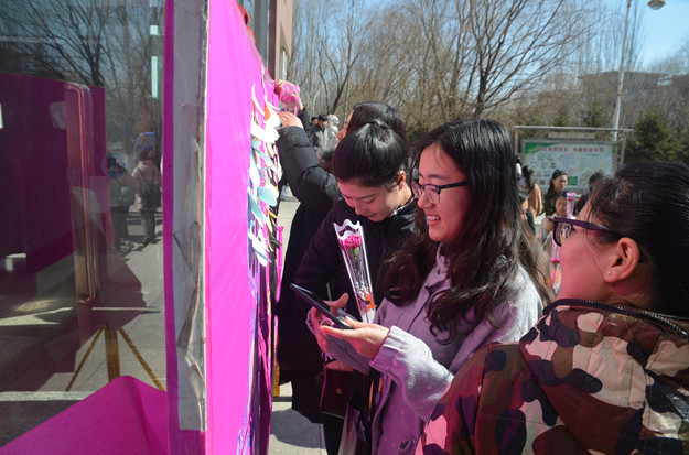 活动中,同学们利用便利贴把写好的心愿粘贴在心愿墙上,校学生会为同学们准备了贴有祝福语的紫色康乃馨,活动现场温馨浪漫,成为“今日师院”一道靓丽的风景线。