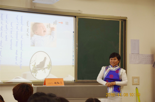 11月9日,由教务处、教学督导处主办,蒙文系承办的集宁师范学院2016年第三场课堂教学公开课活动在白海校区蒙文系304教室开展。党委副书记、校长朱玉东,副校长梁政,教学督导处处长李林书,教学督导员张大飞,蒙文系主任南斯力玛以及蒙文系的全体教师观摩了公开课。公开课由蒙文系教师胡红彦、满都拉主讲,蒙文系副主任孟美英主持。
