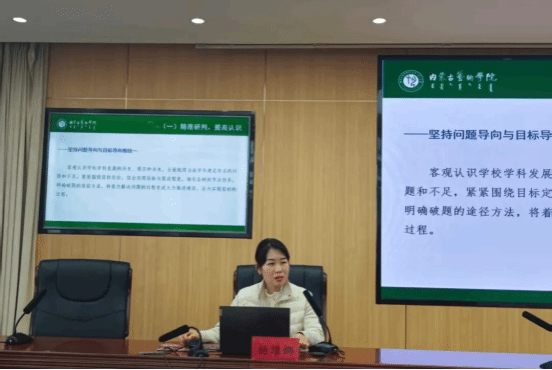 杨维娜以“硕士学位授予单位的申报要点与建设路径”为主题,围绕国家研究生教育政策趋势、硕士学位授予单位申报条件、学科特色凝练、师资队伍建设、科研能力提升、培养质量保障等关键内容,系统阐述了新时代高校学科建设与研究生教育的发展路径。她结合内蒙古艺术学院的实践经验,从政策把握、材料填报、短板补齐、特色强化等方面进行了深入讲解,为我校硕士学位授予单位建设提供了具有前瞻性和操作性的指导。