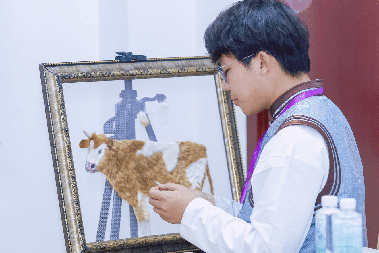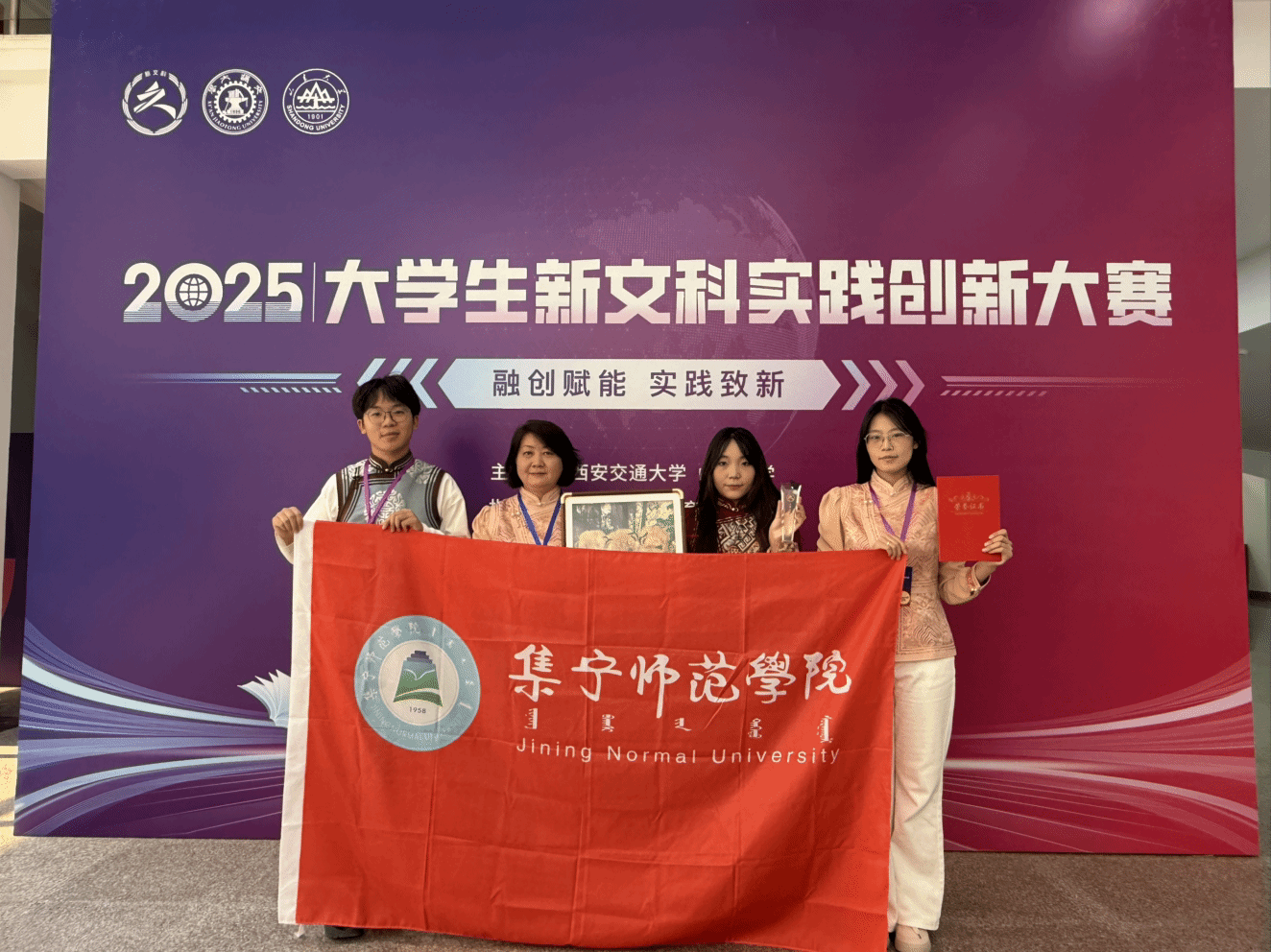 大学生新文科实践创新大赛是全国新文科领域极具影响力的品牌赛事。本次大赛共有近2.5万个项目报名,历经初赛、决赛网评等多轮严苛选拔,最终来自全国 221 所高校的 454 支队伍晋级决赛现场赛。我校“镊绣焕新”团队是 2025 年内蒙古自治区高校入围决赛的 5 支队伍之一,也是我校本届大赛唯一晋级全国总决赛的项目团队。团队深耕乌兰察布市国家级非物质文化遗产“察哈尔毛绣”的传承与创新实践,构建起“高校 + 非遗传承人 + 市场”的协同发展模式,在坚守传统技艺本真的基础上,通过现代设计理念拓展非遗文化应用场景,成功将地方民族文化资源转化为创新发展动能,项目所蕴含的深厚文化价值与鲜明实践特色,获得了评审专家的高度认可与一致好评。