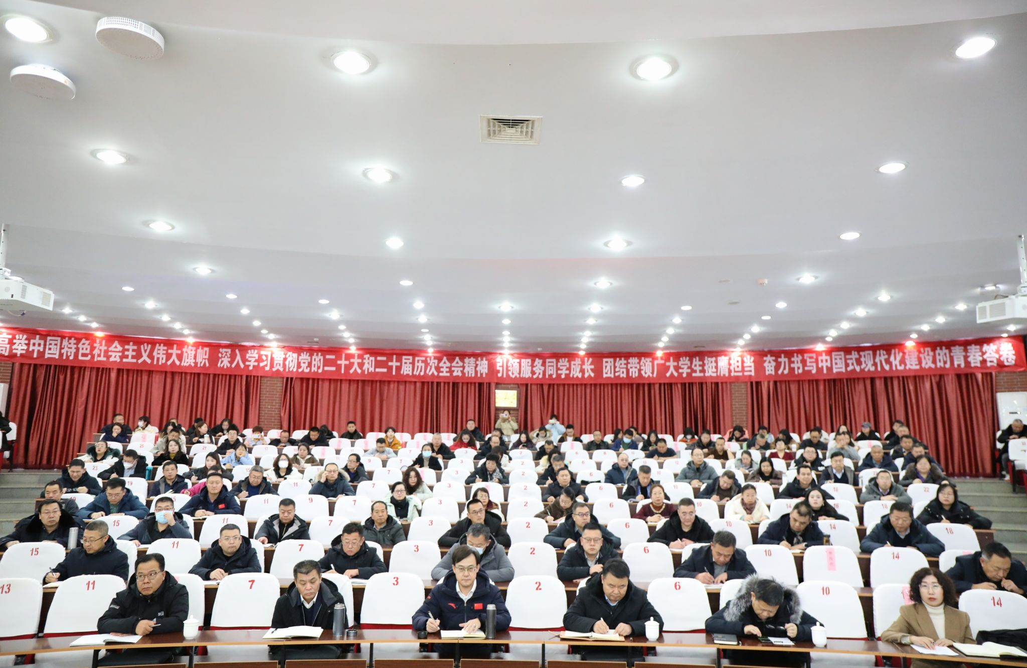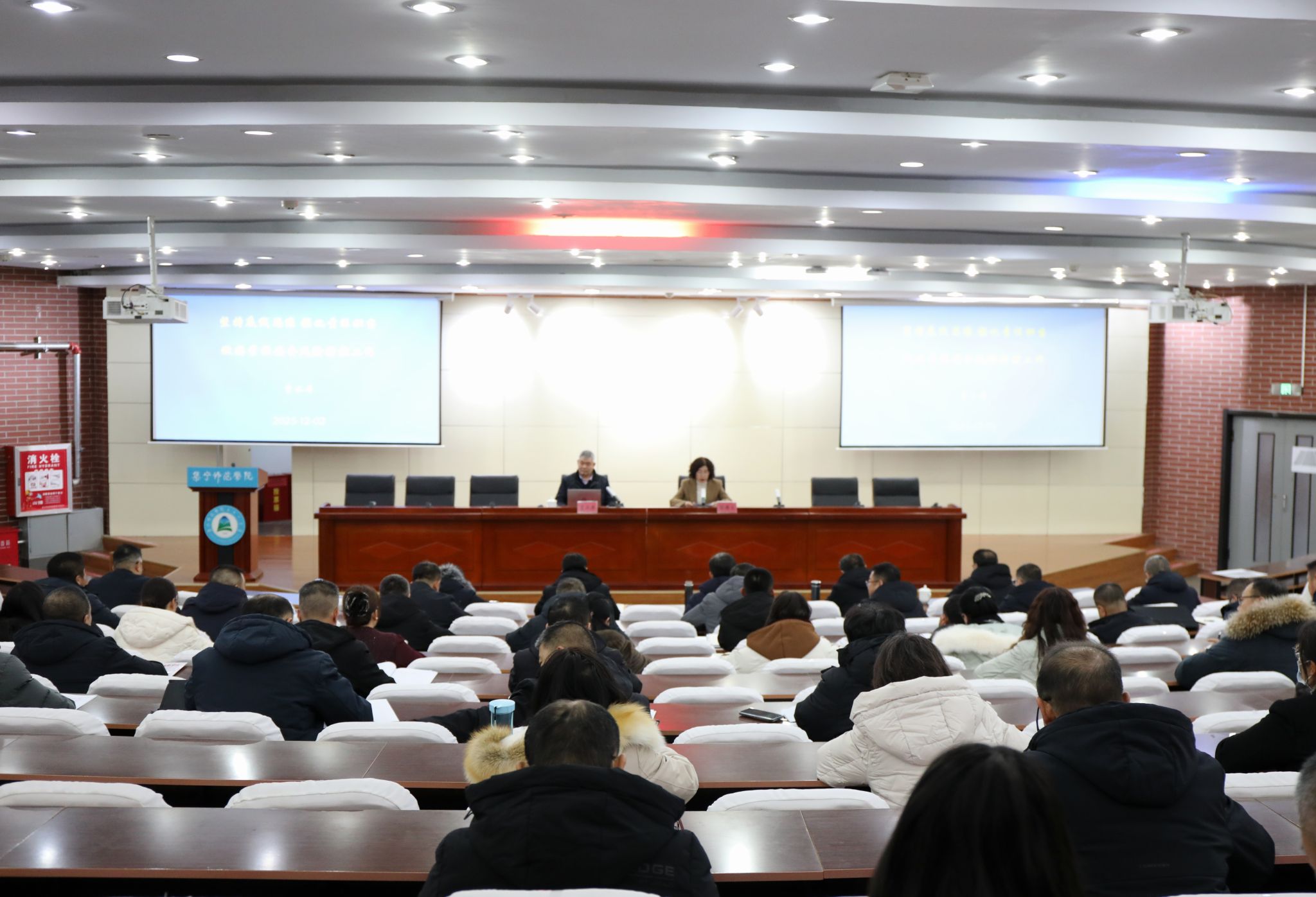 为深入落实校园安全管理工作要求,全面提升安全风险防控能力,筑牢师生生命安全防线。12月2日,集宁师范学院举办“坚持底线思维 强化责任担当”校园安全风险防控专题讲座。全体校领导、党委委员,全校副处级以上干部,各二级学院学团主任、辅导员及附中领导班子参加。讲座由校党委委员、副校长张秀文主持。