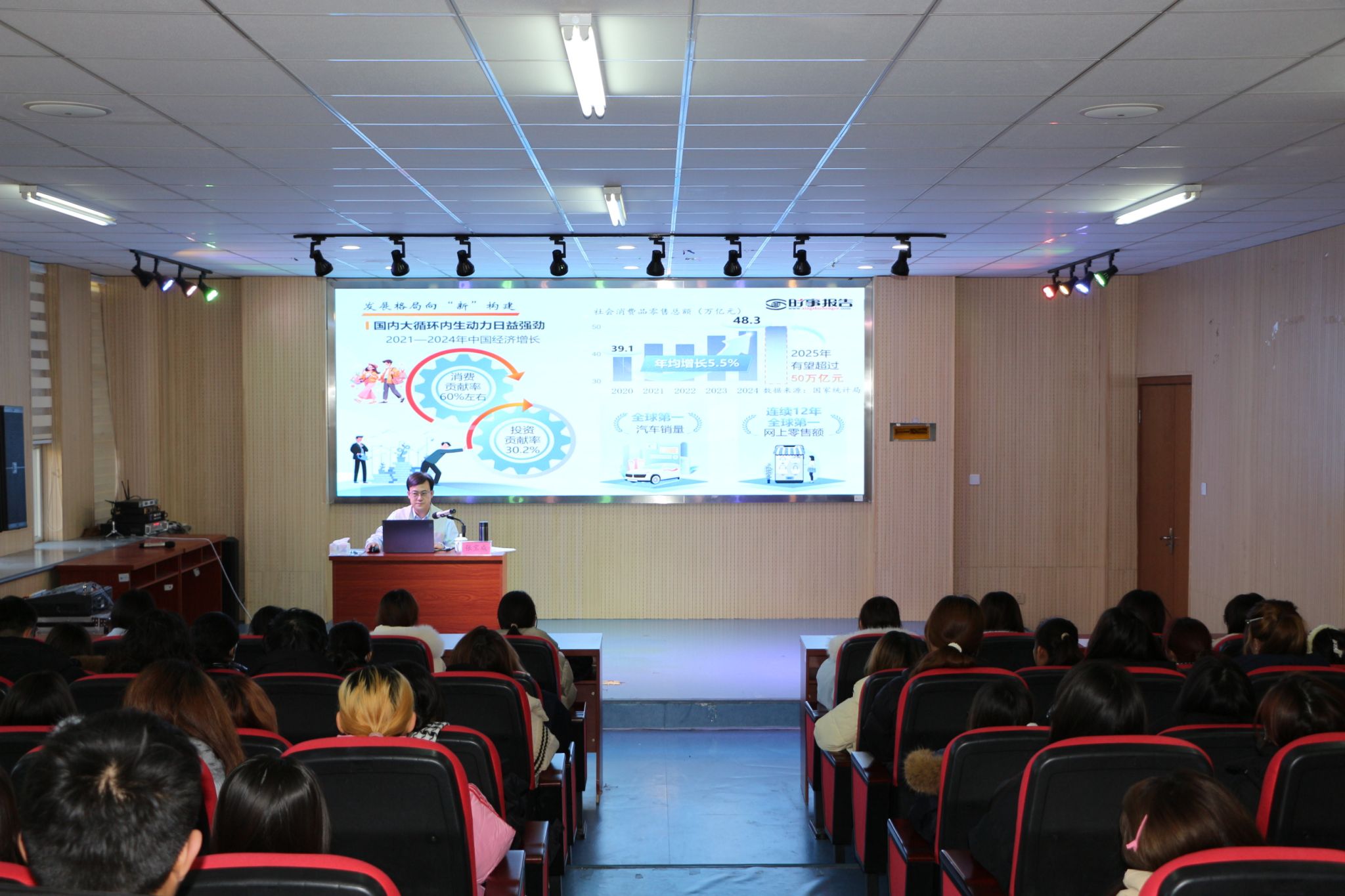 12月3日,李景杰为经济与管理学院学生讲授了题为“深学笃信党的二十届四中全会精神 接续推进中国式现代化”的专题课。他围绕学习贯彻党的二十届四中全会精神,对中国式现代化的科学内涵、本质要求、战略安排进行了深入解读,并结合经济发展新常态、国家治理体系与治理能力现代化等议题,分析了同学们面临的机遇与责任。他勉励同学们要持续加强党的创新理论学习,深刻理解中国式现代化道路的必然性与优越性,夯实专业基础,培养战略思维,努力成长为推进中国式现代化建设的栋梁之材。