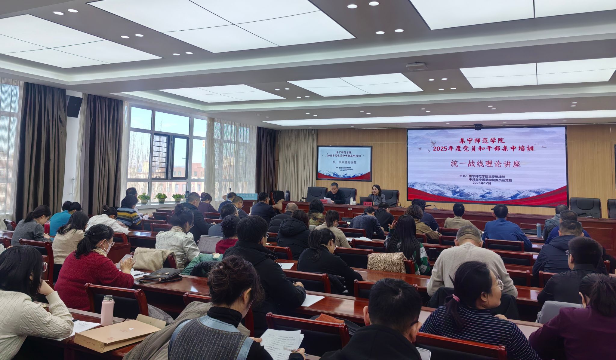 为深入学习贯彻习近平总书记关于加强和改进民族工作的重要思想,有形有感有效深化铸牢中华民族共同体意识教育,推进中华民族共同体建设,根据学校2025年度党员和干部集中培训工作方案要求,12月19日,党委统战部邀请乌兰察布市社会主义学院副院长王永丽教授作“学习习近平总书记关于铸牢中华民族共同体意识的重要论述”专题讲座。各党总支、直属党支部书记、统战委员,各学院学团办主任、教工支部书记、学工支部书记、专职辅导员,附中党委书记、统战委员以及我校党委统战部全体人员近80人参加会议。会议由党委委员、统战部部长赵向军主持。
