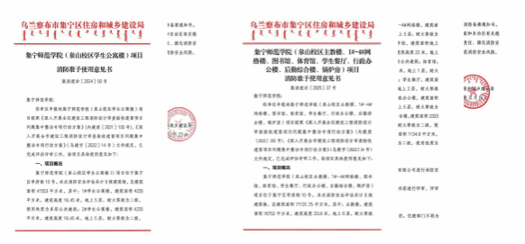 我校泉山校区、虎山校区消防未验收历史遗留问题整改施工项目圆满完成,并已顺利通过乌兰察布市集宁区住建局评估审核,于2025年12月19日取得《消防准予使用意见书》,这标志着我校泉山校区、虎山校区消防设施设备已达到消防安全使用保障要求。