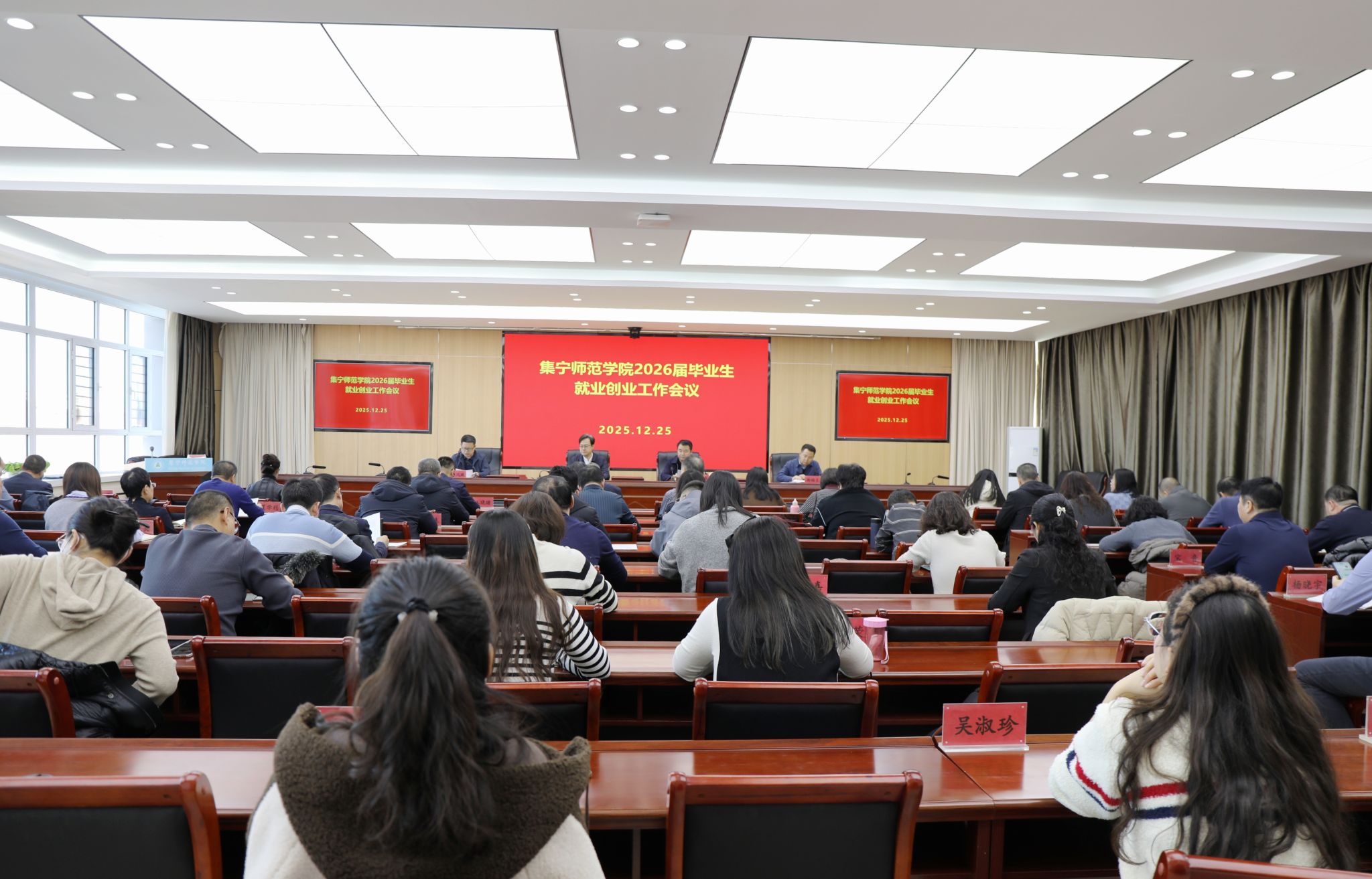 12月25日,集宁师范学院召开2026届毕业生就业创业工作会议。校党委书记张宝成,副校长李凤斌出席会议。党委副书记、校长周建华主持会议。会议回顾总结了学校2025届毕业生就业创业工作情况,分析研判了2026届毕业生就业创业工作面临的新形势新任务,安排部署了2026届毕业生就业创业工作。