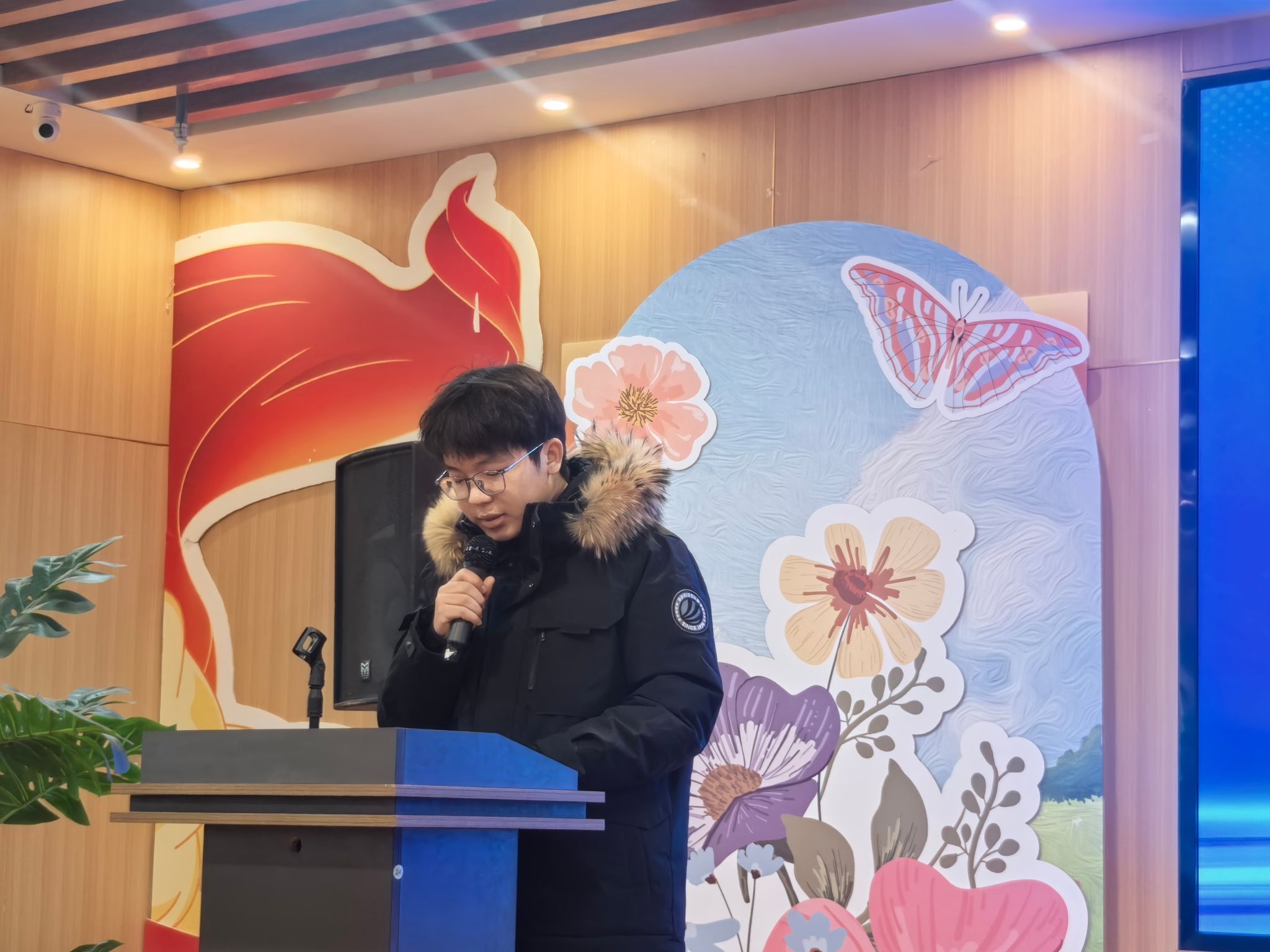 曹晓旭以“文化传承”与“志愿坚守”为脉络,分享了自己与乌兰察布的青春故事:初到集宁求学,他便走进集宁战役纪念馆、乌兰察布博物馆探寻城市根脉;聚焦乌兰察布非遗传承,带领团队走访传承人、开发文创产品、搭建数字化资源库,不仅斩获中国国际大学生创新大赛内蒙古赛区高教赛道金奖、国赛铜奖,还荣获全国新文科实践创新大赛全国金奖,实现内蒙古高校在该赛事的首金突破;其主持的大创项目《北疆文化视域下非物质文化遗产保护与利用实践研究——以察哈尔文化为例》获国家级立项,相关成果在自治区教育厅“礼敬中华优秀传统文化”宣传活动中斩获“魅力非遗”原创作品获二等奖等;投身“志愿军老兵帮扶计划”志愿服务,三年间走访记录25位抗战老兵的峥嵘岁月,凝聚青春力量传播红色文化。他的多项成绩被多家权威媒体专题报道,让更多人关注到乌兰察布的历史文化,也让青春力量汇入传承红色基因的洪流中。