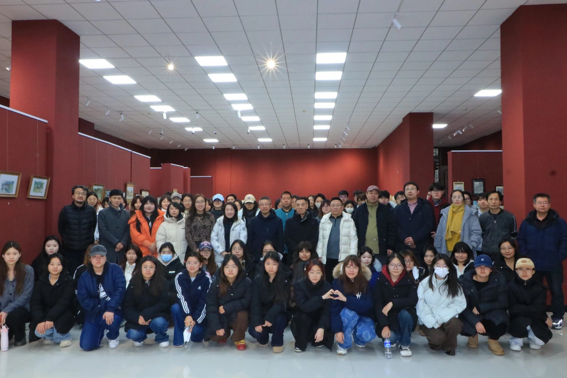 展览现场,师生们驻足于作品前,认真观摩、热烈交流,在画作与对话中激荡出浓厚的学术氛围与艺术感染力。