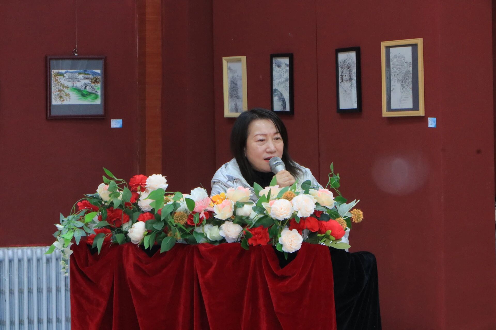 展览开幕式由美术与设计学院系主任范瑞芳教授主持。她向到场嘉宾介绍了画展的背景与意义,强调了写生教学在艺术教育中的重要作用。美术与设计学院院长蔚淑英教授在致辞中,深入阐述了写生创作对于艺术传承与创新的价值,并分享了本次写生活动与展览筹备的历程与感悟。优秀教师代表李栋教授从教学角度出发,阐释了写生对学生观察力、感知力与表达力的培养意义。参展学生代表其木格深情讲述了其在写生实践中的真切体会与成长收获。最后,集宁师范学院教务处处长郭鹏教授讲话,对画展的举办表示祝贺,并正式宣布展览开幕。