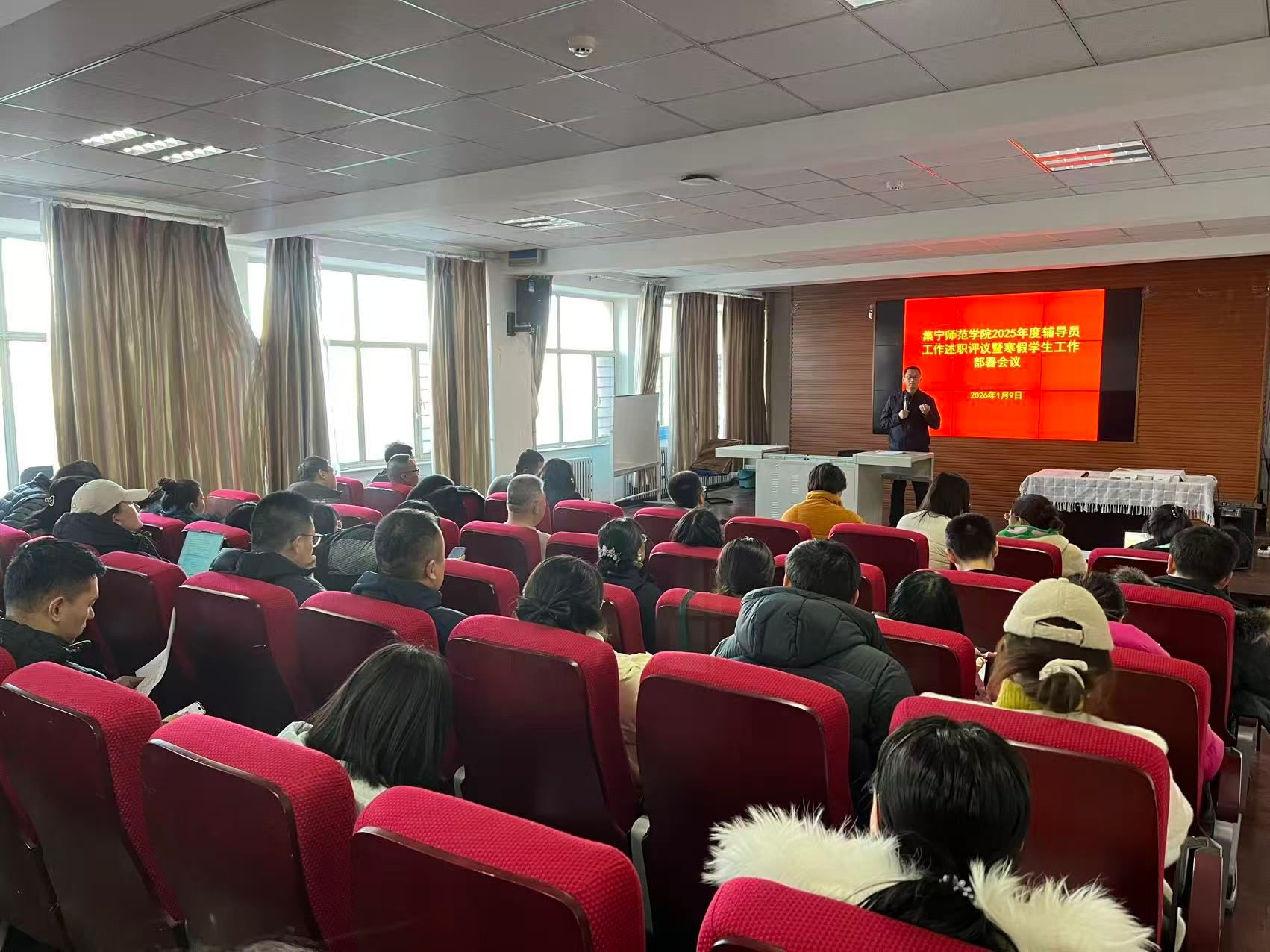 为深入贯彻落实立德树人根本任务,强化辅导员队伍专业化、职业化建设,扎实做好寒假期间学生教育管理服务工作。1月9日下午,集宁师范学院召开2025年度辅导员工作述职评议暨寒假学生工作部署会议。会议由学生工作部(学生处)部(处)长王晓瑭主持。各二级学院副书记、学工办主任、专职辅导员以及学生处科级以上工作人员参加会议。