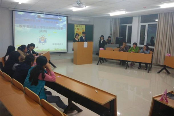 数学系于9月19日在逸夫楼举办了“大学生法律知识竞赛”。出席本次活动的有数学系党总支副书记张宏智、思政教学部教师晓荣、数学系团总支书记王秀琴。通过9月11日的初赛,我系选拔出的优秀选手在本次活动中更好地展现了自我。活动最后,思政教学部晓荣老师对本次活动做出精彩点评。