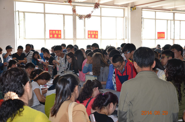 8月29日7:00,集宁师范学院开始2014级新生预报名工作。一大早,办公室组、协调及对外联络组、报道咨询组、收费组、住宿安排组、新生接待组、后勤医疗保障组、宣传组、安全保卫组等各个领导小组就已经准备就绪,有条不紊地开展新生接待工作。