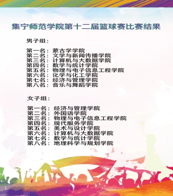为丰富学生课余生活,增强团队精神和集体凝聚力,10月13日,由集宁师范学院主办、体育与运动学院承办、集宁师范学院篮球协会协办的篮球比赛圆满落幕。本次比赛历时18天,共69场比赛,参赛队员300余名。比赛由“我奥篮球”app全程直播,线上观看人数创历史新高。