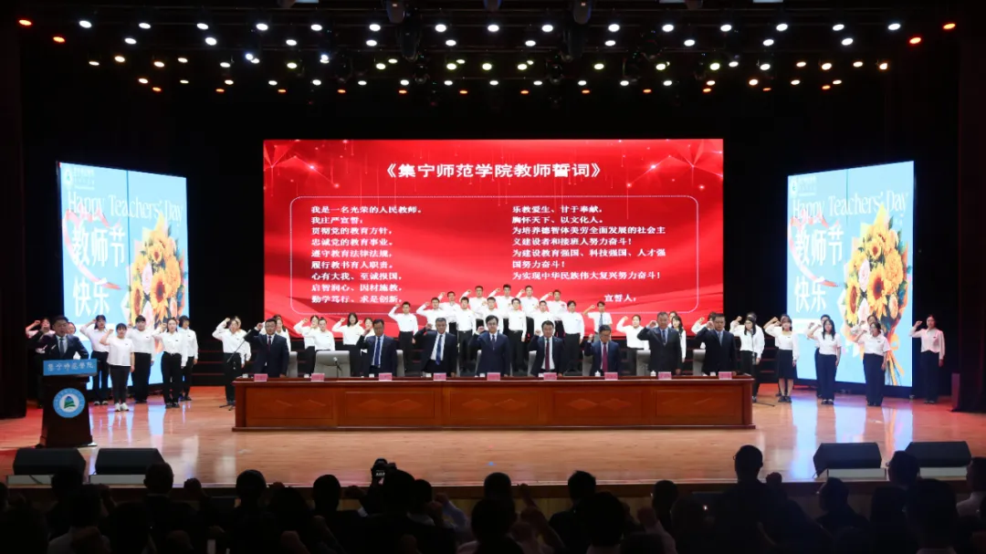 年年春华秋实,岁岁桃李芬芳。9月10日下午,集宁师范学院以“以教育家精神铸魂强师,谱写教育强国建设华章”为主题,在泉山校区逸夫楼多功能厅隆重举行第41个教师节庆祝暨表彰大会。1000余名师生代表齐聚一堂,以表彰先进立时代标杆,以师道传承续育人薪火,以青年宣誓启奋进新程,共绘学校高质量发展壮美画卷!