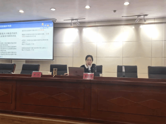 培训中,乌兰察布市人力资源和社会保障局养老保险科朱志宏科长就《实施弹性退休制度暂行办法》、机关事业单位女职工有关退休政策、个人养老金有关政策、公务员渐进式延迟法定退休年龄有关政策进行了全面解读,并就渐进式延迟法定退休年龄与弹性退休制度之间的关系,弹性提前、延迟退休如何办理,能不能自愿选择弹性提前退休等问题进行了具体说明。